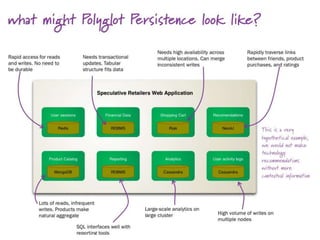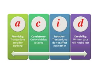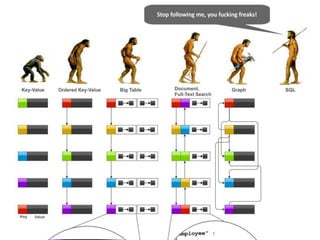 The document discusses NoSQL databases and their advantages compared to SQL databases. It defines NoSQL as any database that is not relational and describes the main categories of NoSQL databases - key-value stores, document databases, wide column stores like BigTable, and graph databases. It also covers common use cases for different NoSQL databases and examples of companies using NoSQL technologies like MongoDB, Cassandra, and HBase.