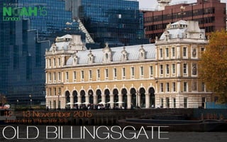 The document provides information about the NOAH Conference, which is a leading industry event in Europe that connects senior executives from internet companies to investors and strategic partners. It discusses the conference's objectives of discussing disruptive internet trends across key industries and facilitating business deals. Details provided include past attendee numbers of over 2,000 people, high-profile speakers from companies like Google and Rocket Internet, and that the conference has helped originate over $50 billion in company financings.