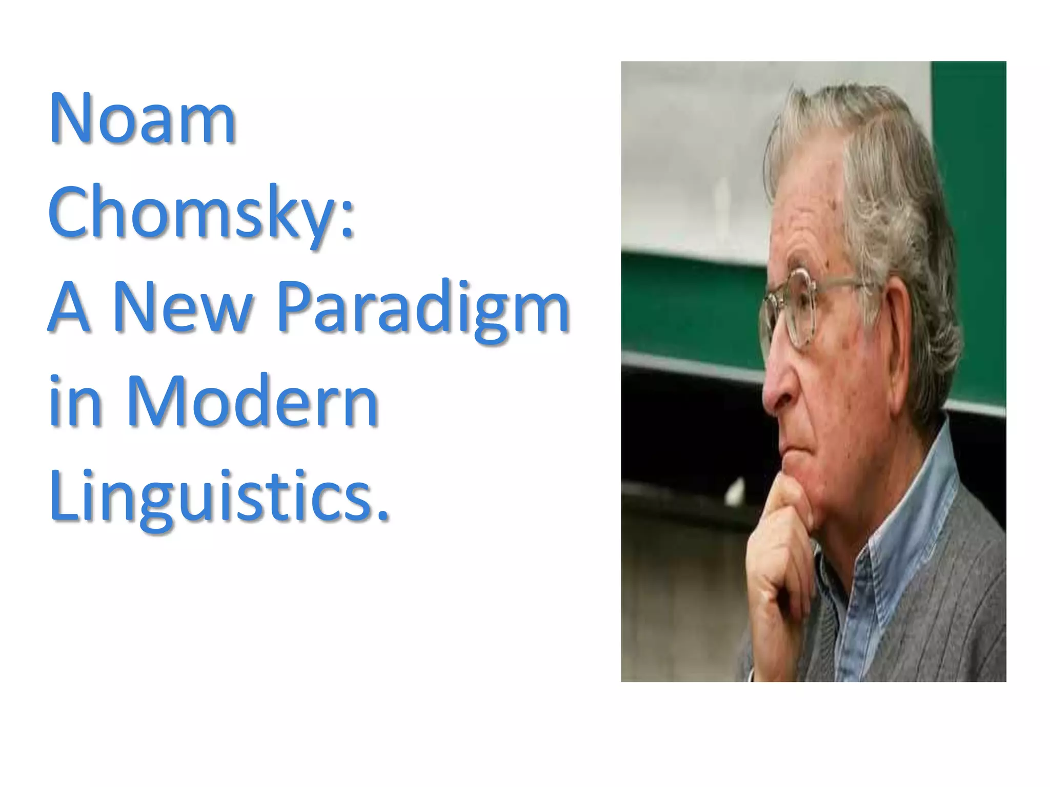 Noam Chomsky revolutionized the field of linguistics with his theory of transformational generative grammar. He argued that language is an innate, rule-governed system and that children have an innate language acquisition device that allows them to learn language with limited exposure. Chomsky critiqued behaviorist theories of language learning and argued that aspects of syntax are universal across languages. His work had implications for understanding language development and differentiated innate and environmental influences on language learning.
