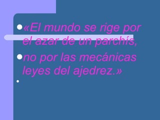 «El mundo serige por el azar de un parchís, no por las mecánicas leyes del ajedrez.»