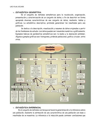 This document provides definitions and descriptions of basic statistical concepts. It discusses how statistics is used to collect, organize, analyze and present data in order to make decisions or predictions about a population based on sample data. It describes descriptive statistics, which summarize and describe data, and inferential statistics, which are used to generalize results from a sample to a population. It also defines key statistical terms like population, sample, variables, and levels of measurement.