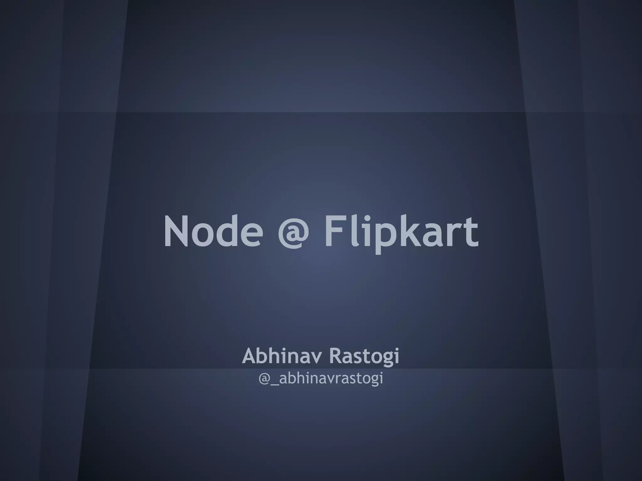 Abhinav Rastogi discusses Node.js in production at Flipkart, covering challenges they faced like code maintainability, high availability, testability, and performance; why they chose Node like its parallel asynchronous nature and large ecosystem; and remaining challenges like relative newness and unsolved problems.