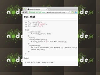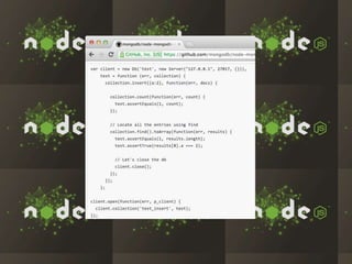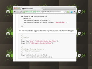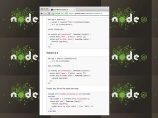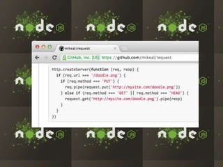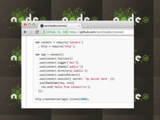 The document discusses the rapid growth and adoption of Node.js and npm among companies like LinkedIn, Walmart, and eBay, highlighting its performance advantages for I/O bound tasks and dynamic application development. It emphasizes Node.js's ability to handle large numbers of connections with low memory overhead and its use in improving mobile application experiences. Furthermore, it details how companies are embracing a startup mentality and leveraging the rich ecosystem of Node.js tools to innovate efficiently.