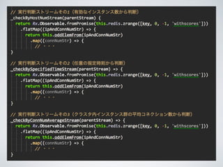 ・Clusterの状態変化をシームレスにスケーリングイベントに 繋げるため、FRPのパラダイムを利用 ・Reactive-Extensions/RxJS ・詳細後述(時間の限り) Point