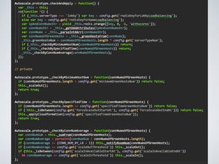 ・Game/Lobby各Clusterの状態を毎秒監視 ・設定した閾値に応じてサーバーを自動で追加/縮小 ・スケールアウトは最短で3分に一度、スケールインはよりシビ アに1時間に一度のスパンに制限(任意の値を設定可能) Autoscaling