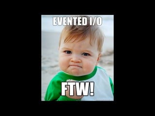 This document provides an introduction and overview of Node.js. It discusses that Node.js is asynchronous and event-driven, uses non-blocking I/O, and is well-suited for data-intensive real-time applications that run across distributed devices. It also provides instructions on getting started with Node.js, including installing it, basic usage like importing modules and writing files, how to create a simple web server, working with event-driven libraries, and popular Node.js projects like Express and Socket.IO.