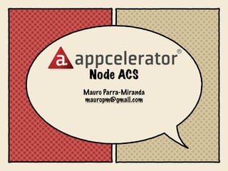 Node ACS allows customers to extend the Appcelerator Cloud Services platform using Node.js. Node.js provides an event-driven and scalable framework for building network applications. With Node ACS, customers can create custom microservices that integrate with ACS features like checkins and social posting. These microservices can leverage Node.js modules and scale using MongoDB. The document provides examples of setting up a Node.js app with ACS, adding services, using modules, calling the ACS API, and connecting to MongoDB for data storage. This allows customers to build and deploy scalable web services without server configuration.