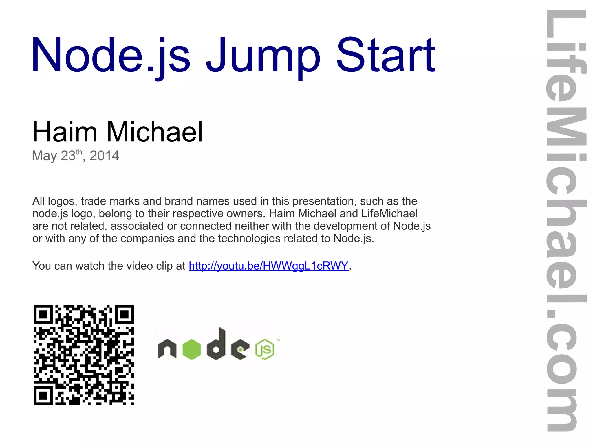 Haim Michael gave a presentation on Node.js Jump Start. The presentation introduced Node.js as a platform for developing web applications using JavaScript. It discussed asynchronous programming in Node.js, the module architecture, and popular Node.js modules. The presentation provided learning resources on the Node.js website and recommended courses for further learning.