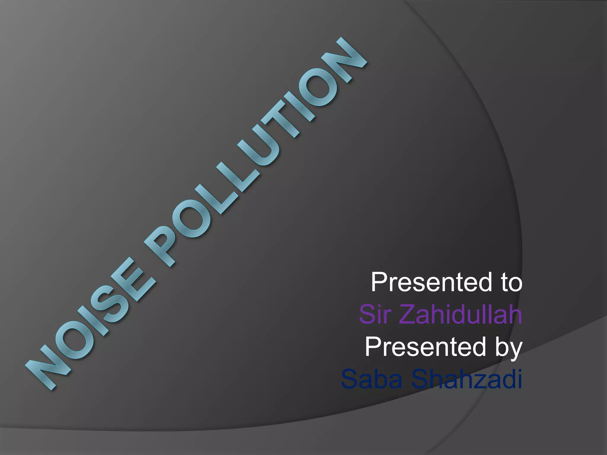 This document discusses noise pollution, including its sources, effects, and methods of control. It defines noise pollution and distinguishes it from sound. It identifies major sources of noise pollution like transportation, construction, industries, and households. It outlines the negative impacts of noise on human health, animal life, and the environment. Finally, it proposes approaches to control noise pollution by reducing it at its source, during transmission, and at the receiver end.