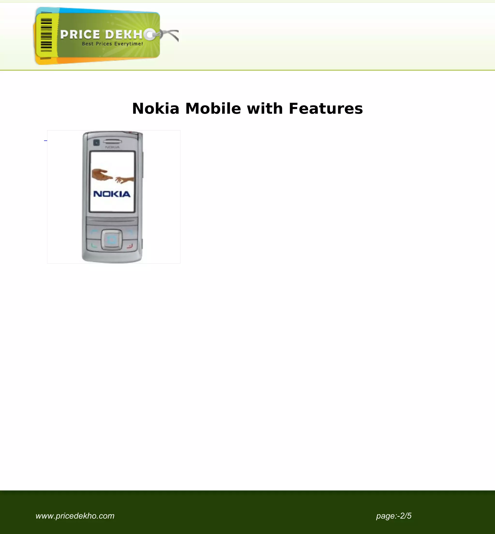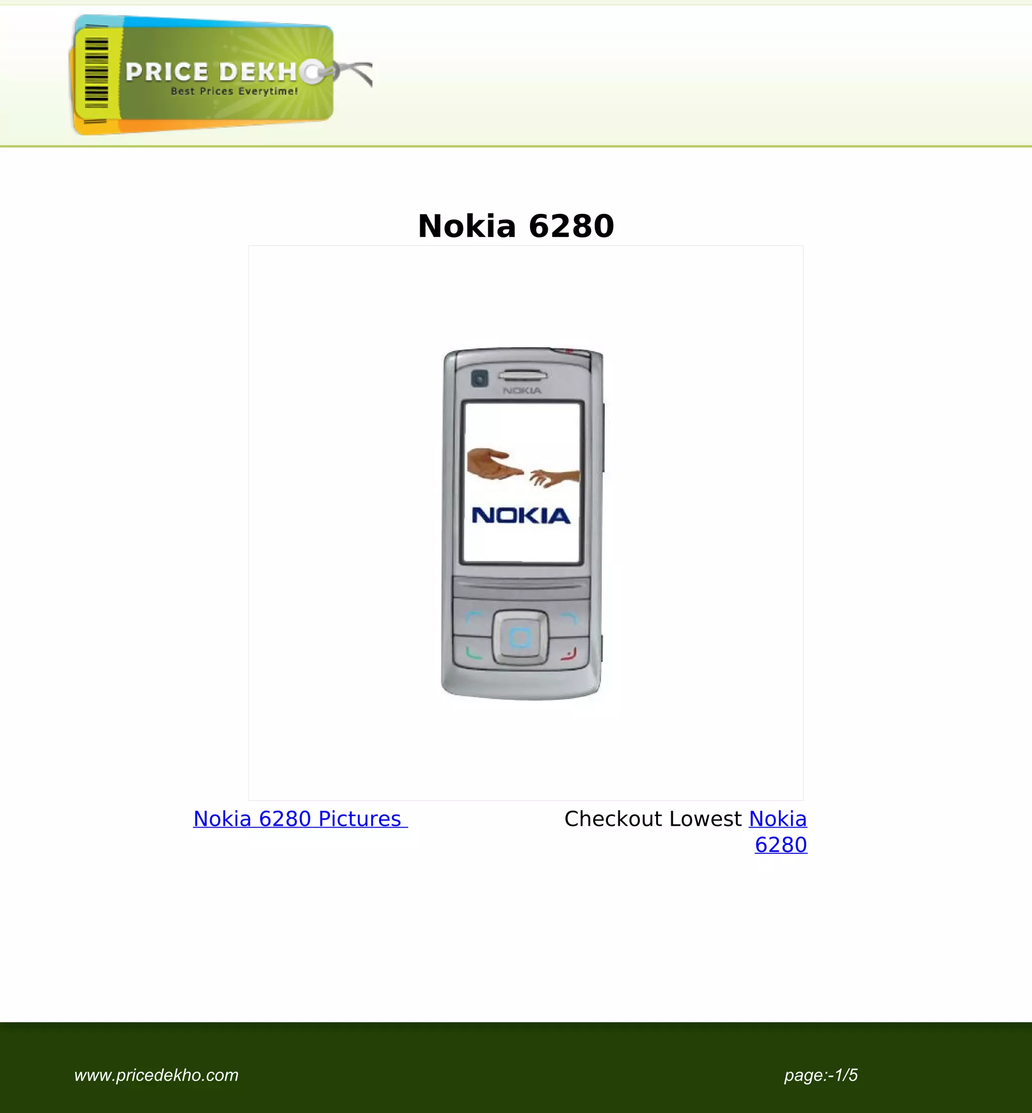 The Nokia 6280 is a discontinued mobile phone announced in 2005. It has a 2.2-inch display, 2MP camera, Bluetooth, GPRS, EDGE and 3G connectivity. It has an internal memory of 6MB and can store up to 500 contacts. The Nokia 6280 has a standard 970mAh battery that provides up to 5 hours of talk time and 200 hours of standby time.