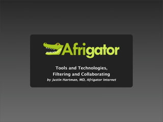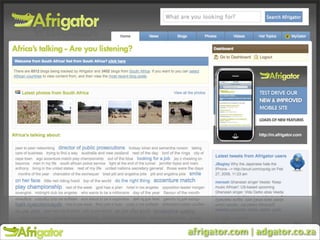 Afrigator is the largest social media aggregator in Africa, recognized as one of the top non-US startups by Business 2.0 and highlighted by various media outlets. The platform provides insights into the blogging landscape across Africa, including growth statistics and popular sites. It also offers tools for filtering and aggregating content, including feed readers and social media monitoring techniques.