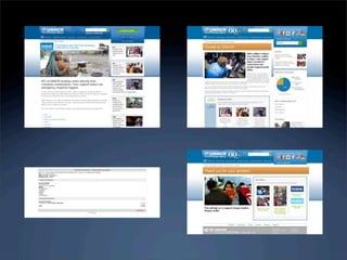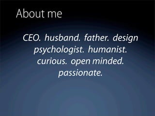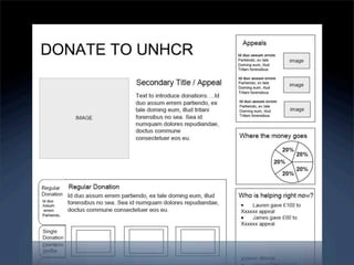 The document discusses user-centered design for online donation journeys. It describes conducting research through documenting insights, building wireframes, and testing key pages. Testing revealed donors preferred a new donation landing page design that showed funding details and engaged them emotionally. A new thank you page made donors feel connected rather than disconnected. The approach focused on empathy over guilt and ensuring the journey reflected e-commerce best practices to maximize donations.