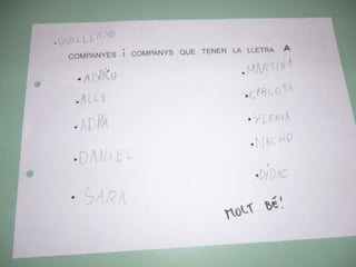 Treballem amb les lletres i anem aprenem poc a poc el nostre nom, els noms dels companys de la classe, dies de la setmana, dites etc.