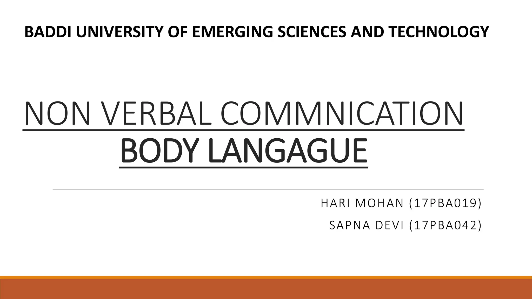 This document discusses nonverbal communication and body language. It provides examples of common body language gestures and their meanings, such as a shoulder shrug indicating a lack of understanding. Specific gestures involving the hands and arms are explored, including open palms being associated with honesty. The document cautions against certain gestures that can create wrong impressions, like finger pointing or fidgeting, and recommends maintaining good posture and eye contact for effective communication.