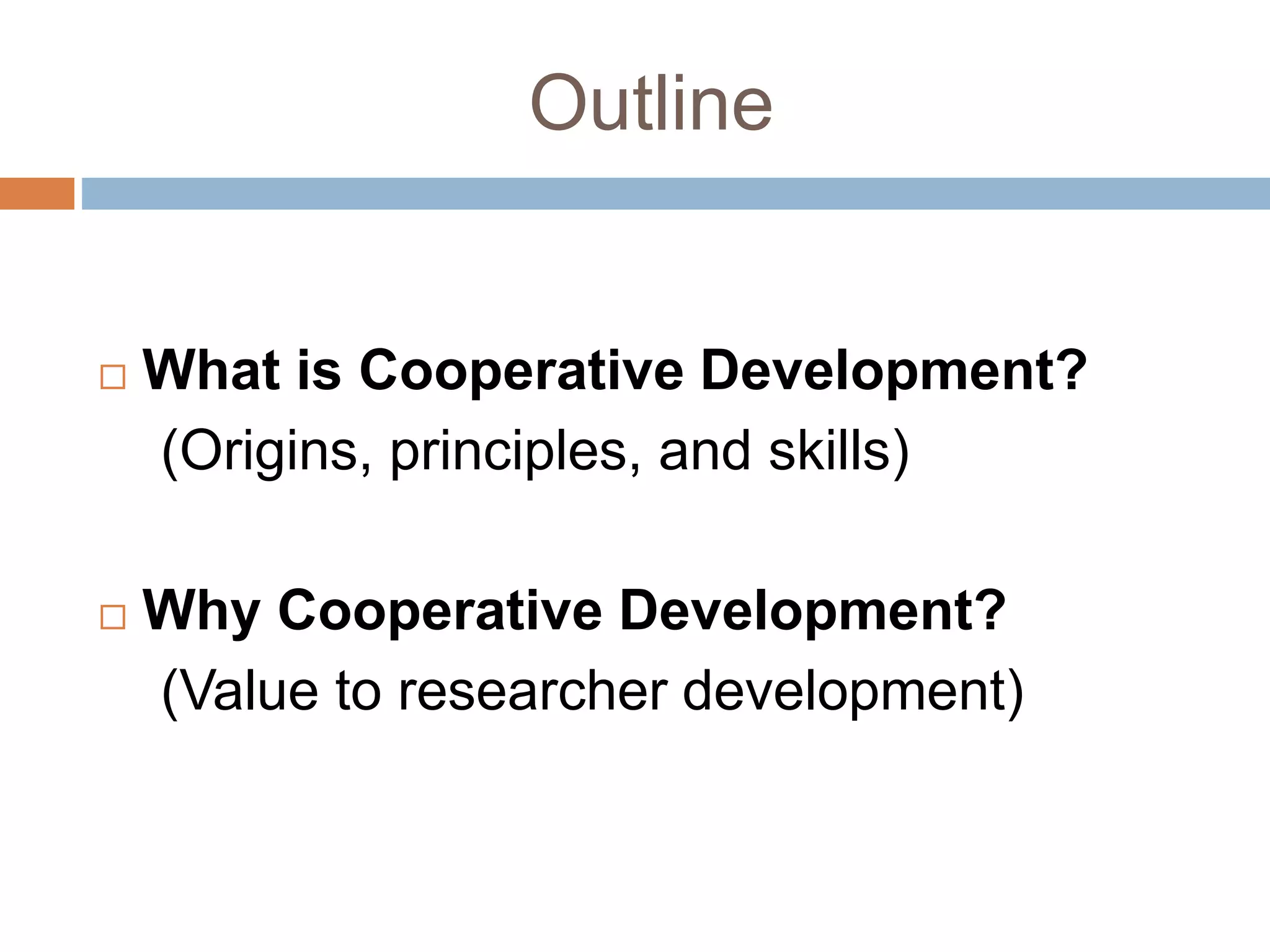 The document discusses the concept of cooperative development in the context of researcher development, emphasizing its origins, principles, and benefits. It highlights a non-judgmental communication approach that fosters personal and professional growth among researchers through a person-centered dialogue. Additionally, it outlines the importance of collaboration, empathic understanding, and support for lifelong learning within academic environments.