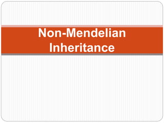 This document discusses several forms of non-Mendelian inheritance including incomplete dominance where traits show a combined phenotype, co-dominance where offspring exhibit both parental traits together, multiple alleles where more than two alleles can code for a trait, maternal and paternal effects where the parent's environment or genotype influences the offspring's phenotype, epigenetic inheritance involving modification to genes or chromosomes early in development, and gene conversion being a DNA recombination process that transfers sequence information between DNA helices.