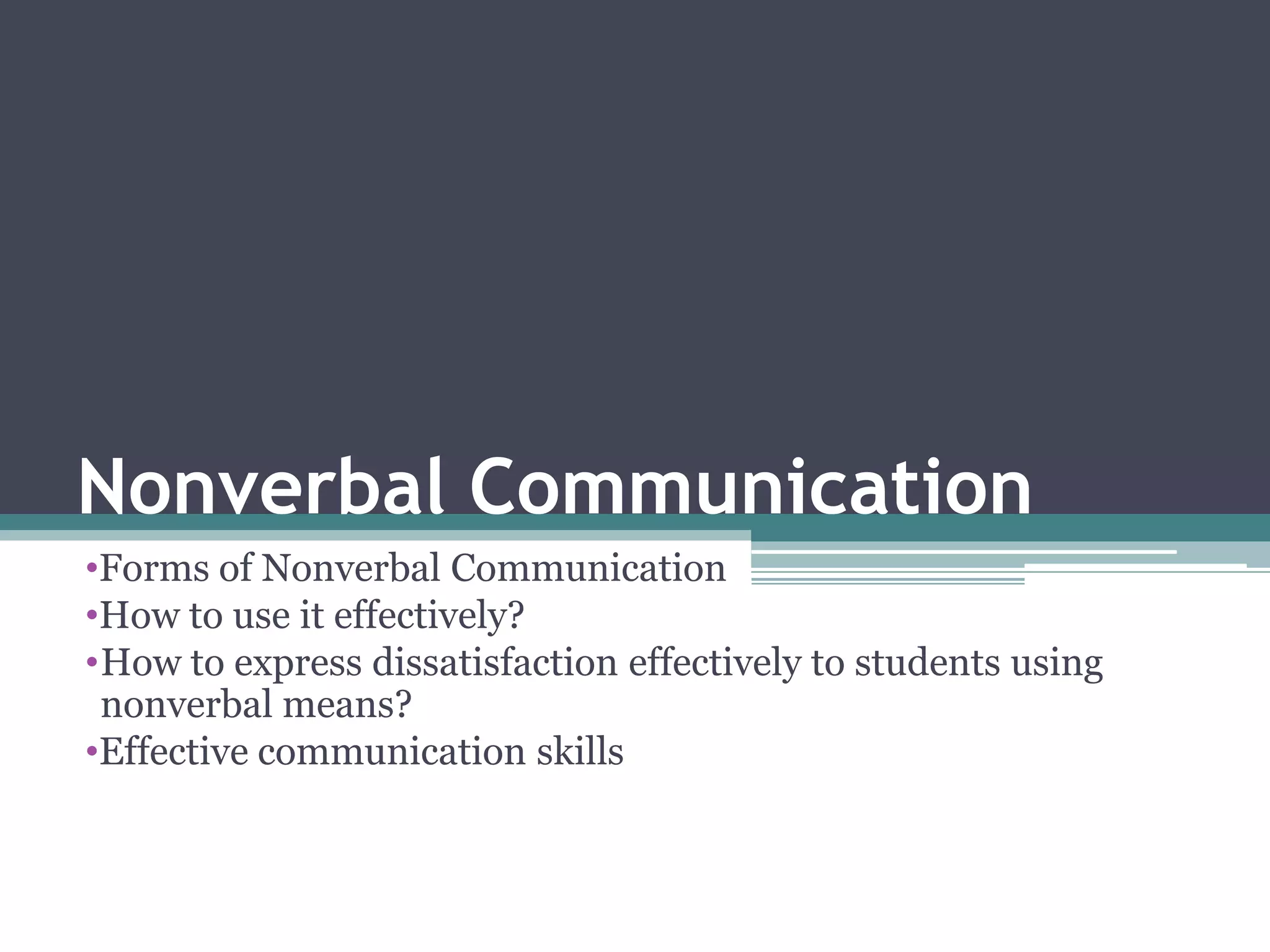 This document discusses various forms of nonverbal communication that teachers can use effectively, including facial expressions, eye contact, gestures, posture, proxemics, paralinguistics, and appearance. Maintaining eye contact, using gestures to reinforce messages, varying tone and being aware of body language can help teachers clearly communicate and build relationships with students. When expressing dissatisfaction, a teacher should make eye contact, stand closer, vary vocal tones, and use "I" statements to avoid blame. Active listening skills like affirming ideas and paraphrasing help teachers understand students and ensure messages are conveyed accurately.