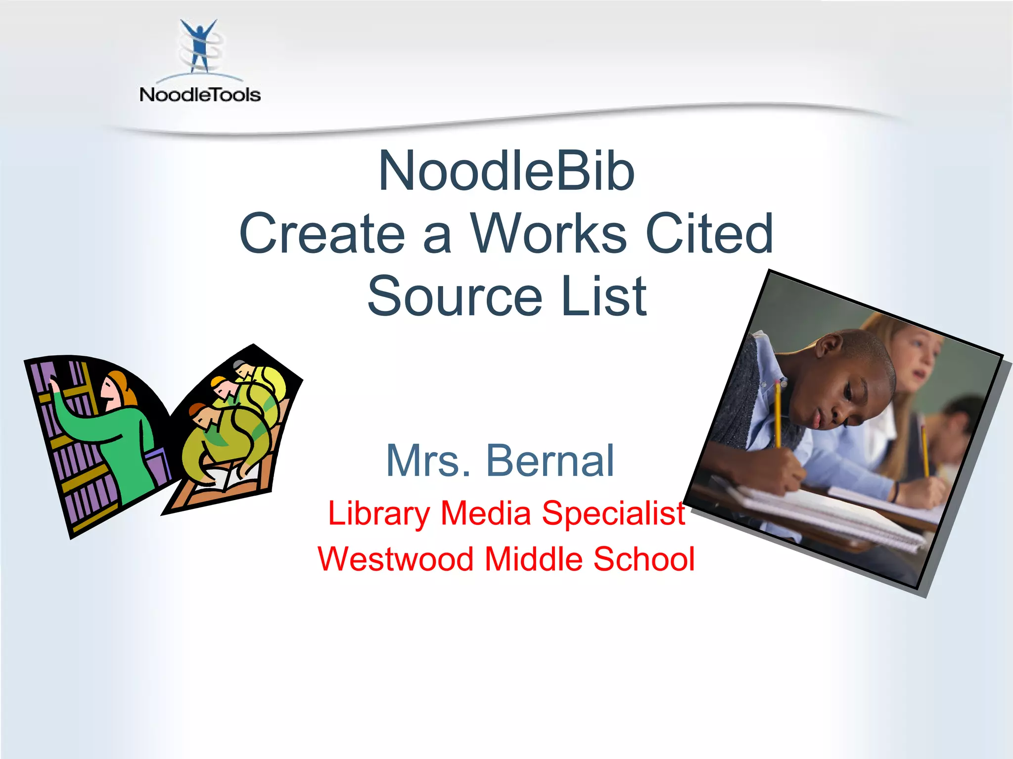NoodleBib is an online tool that helps students create citations and bibliographies in the correct style. It allows users to choose a citation style, name their source list, select sources from a drop-down menu, get help for each field, and compile their working list. When the list is complete, it can be formatted and exported or copied and pasted into a Word document. NoodleBib provides step-by-step instructions to help students properly cite sources for research projects and papers.