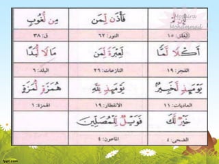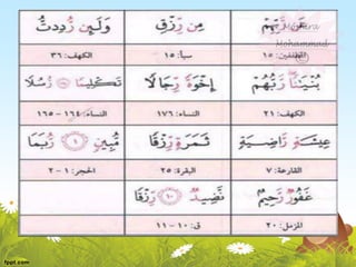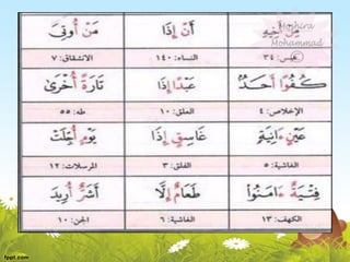This document discusses the rules for pronouncing noon saakinah and tanween in Arabic. It explains that they have the same rules because any noun ending with tanween is pronounced with noon saakinah. It then outlines the main rules as idhar halqi, iqlaab, idgham, and ikhfaa', describing what letters trigger each rule and how the pronunciation changes. For example, idhar occurs when noon saakinah is followed by certain throat letters, while iqlaab changes noon saakinah to a hidden meem when followed by b. The document provides examples and notes on exceptions to the rules.