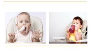 Hand-mouth coordination:1 year – tries to feed with spoon but may