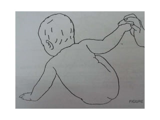 The document outlines the normal developmental milestones for children aged 0-1 year, emphasizing the interplay between genetic and environmental factors. It categorizes development into gross motor, fine motor, social and cognitive, language, and sensory functions, detailing specific progressions in skills such as posture and reflexes at various stages. Key concepts include the cephalocaudal principle of development and the sequential attainment of specific milestones necessary for pediatric neuro examination.
