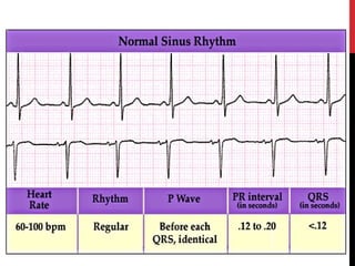 The document provides a detailed overview of the cardiac cycle, its physiological properties, and the principles of electrocardiography (ECG). It describes the electrical and mechanical phases of the cardiac cycle, components of ECG, and how to interpret the data it provides regarding heart function. Additionally, it outlines the types of ECG monitoring, lead configurations, and methods for calculating heart rate.
