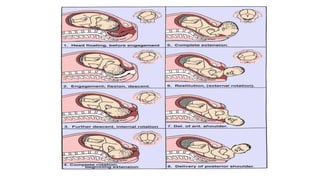 1) The document summarizes the management of normal labor and the use of the partograph to monitor labor. It describes the stages of labor, mechanisms of labor, and complications that can occur.