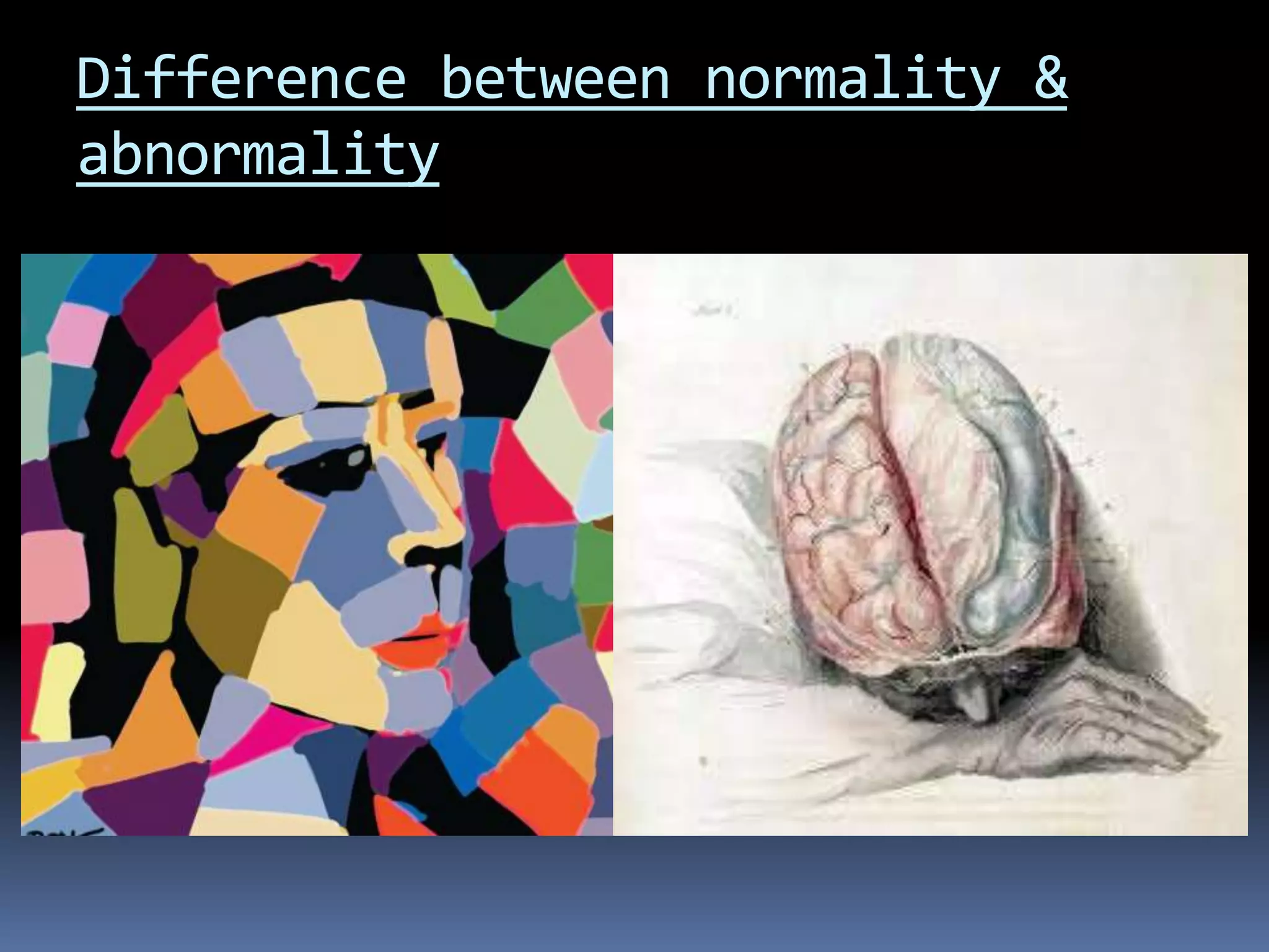 This document discusses the difference between normality and abnormality. It defines normality as the absence of illness and presence of well-being, adopting to situations according to rules. Abnormality is defined as significant deviation from accepted behaviors, emotions, or thoughts. Abnormality can be defined statistically, by violation of social norms, personal distress, or legal violations. Causes of abnormal behavior include biological factors like genetics or physiology, psychological factors like learning or coping, and sociocultural factors like discrimination. The DSM provides criteria for classifying mental disorders and considers behaviors abnormal if associated with disability, distress, social norm violations, or dysfunction. The GAF scale measures functioning on a 0 to 100 scale to assess normality and