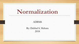 The document discusses database normalization and functional dependencies. It defines normalization as imposing rules on database tables to eliminate anomalies during data manipulation. Functional dependency is defined as a relationship where a set of attributes determines another. The properties of functional dependencies - reflexive, augmentation, transitive, union, and decomposition - are explained and examples are given. Normalization and understanding functional dependencies helps design high quality databases without redundancies or anomalies.