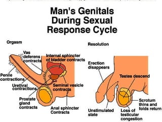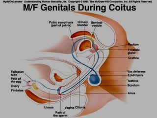 The document provides an overview of human sexuality including its anatomical, physiological, psychological, and sociological aspects. It discusses topics like sexual development and puberty, male and female reproductive systems, the menstrual cycle, sexual hormones and fertility, and some common issues related to sexuality and reproduction.