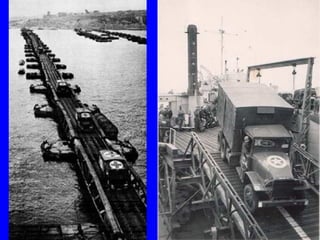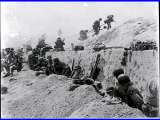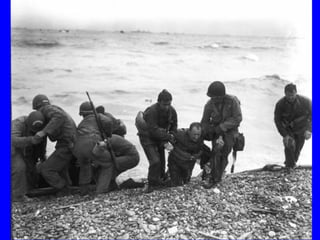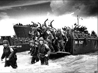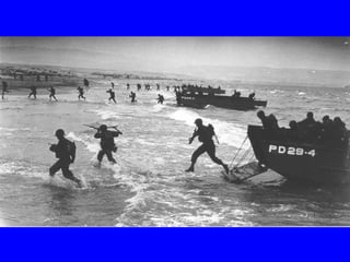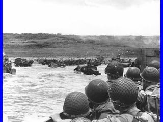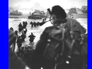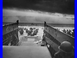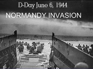 The Normandy Invasion was a massive military operation launched on June 6, 1944 by Allied forces. Over 5,000 ships and 11,000 planes were involved in transporting over 150,000 troops across the English Channel to five beaches in Normandy, France. It faced heavy German resistance from fortified defensive positions along the coast. While the invasion resulted in over 9,000 casualties on D-Day alone, it succeeded in securing a beachhead in Normandy and marked a major turning point in World War 2, ultimately leading to the liberation of Western Europe from Nazi Germany.