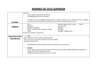 - Es treballa una norma ortogràfica setmanalment a castellà i a català. Es fa un cartell de la norma i s’ enganxa