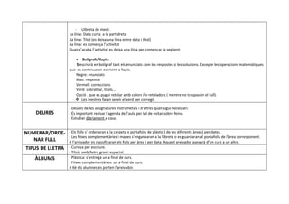 - Deures de les assignatures instrumetals i d’altres quan sigui necessari.