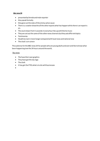 The document compares different news programs: