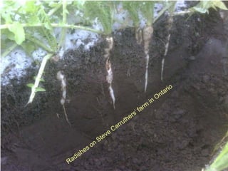 The document discusses the use of cover crops in row crop systems in northern Illinois, highlighting their benefits in reducing nitrate leaching and improving soil health. It includes examples of farmers' experiences, innovative practices for planting cover crops, and considerations for effectively managing them. The emphasis is on the adaptability of farmers and the importance of proper management to maximize the advantages of cover cropping.