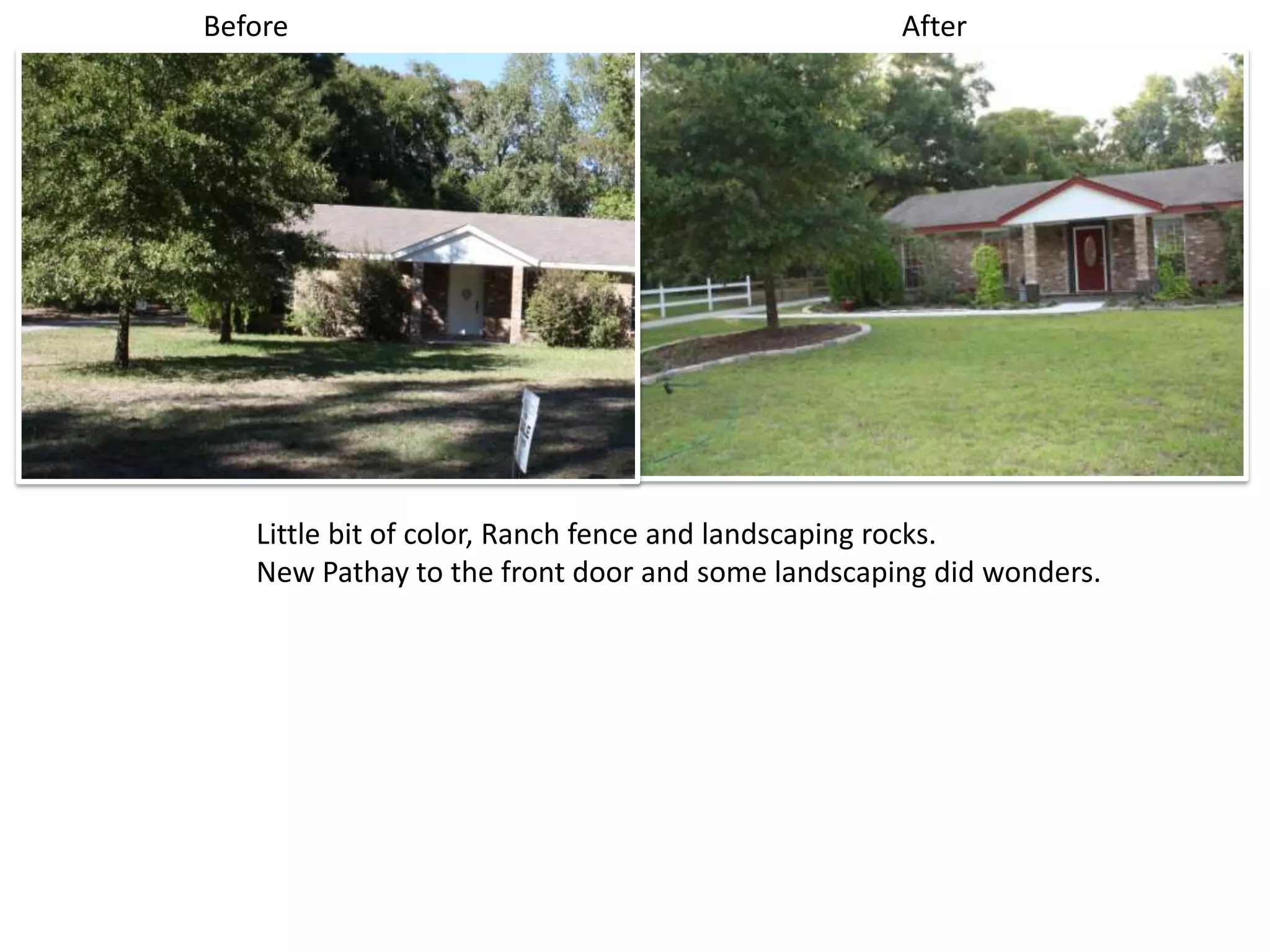 - Landscaping additions like a new front path, landscaping, and pressure washing.