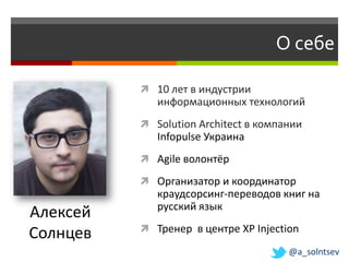 Документ обсуждает возможности и проблемы NoSQL баз данных, подчеркивая их развитие с 70-х и современные вызовы в связи с объемами и структурой данных. Автор, Алексей Солнцев, представляет различные типы NoSQL баз, такие как документ-ориентированные и граф-ориентированные, а также рассматривает вопросы масштабирования и согласованности. Он также подчеркивает важность сообществ и взаимодействия в мире IT при работе с новыми технологиями.