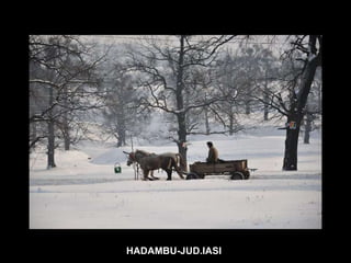 This document lists various locations in Romania that evoke nostalgia for George Enescu. It includes places where he was born, spent winters and summers, and found refuge or inspiration for his music. Some of the places mentioned are: the village where he was born in northeastern Romania, the Apuseni Mountains, the Transfagarasan road, the Danube Gorge, the Bucegi Mountains, Brasov, and various places in Maramures, Ardeal, and Bucovina regions.
