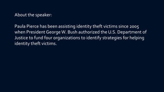 This document discusses identity theft, including: