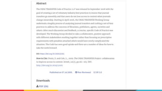 Crossref provides Digital Object Identifiers (DOIs) to improve the discoverability and citation of various research outputs, including journals, books, and datasets. A DOI is a persistent digital identifier displayed as a full URL link that aids in reference linking through comprehensive metadata. Crossref also offers resources for managing metadata and linking DOIs to references efficiently.