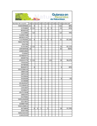 Taller Semana1|52526refuerzo semana semana ponderado Foro Actividad Foro Taller2|52528 Foro Total|52501 Temático de Semana 2|52529 Semana 4|52533 Tallersemana 1|52527 3|52530 4|52532 SemanaForo Taller 1|134174 3|52531 semana Temático Semana 93042409683 4,5 4 8,5 88% 15703882 4 4,5 5 4 3 21 85% 80182553 21132882 3,5 3,5 70% 1143927168 6829631141 1122782065 3,5 4 5 5 3 21 87,14% 96021703750 9101766 31191582 3 4,5 5 13 81,11% 1095909938 45 45 900% 1040032804 7226947 1079605977 60448756 1032415779 5 4,5 4,5 14 96,67% 77016242 39748506 86044972 4 4 80% 93122306133 18893168 16072133 55239026 35428209 0 0 0% 52338688 1013620547 1112464013 12913647 53106627 1057573038 18402247 41670482 92031456950 32513821 1038807369 95031208913 36758850 4 4 5 5 18 97,78% 30397390 94052101535 1144125319