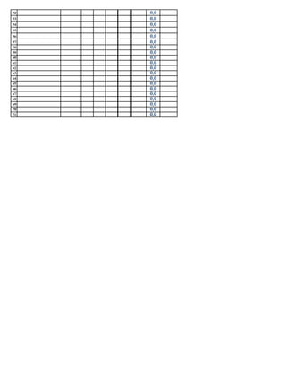 This document contains the grades of 71 students in the Mechanics course at the Universidad Nacional Experimental "Francisco de Miranda". It lists each student's name, identification number, and grades on tests, projects, and assignments that make up their final grade in the course. The highest performing students include Luis Ruiz, Manuel Palacio, and Nathalli Coronel who received overall grades of 16.0, 13.0, and 11.6 respectively. Many students received failing grades or incomplete grades for the course.