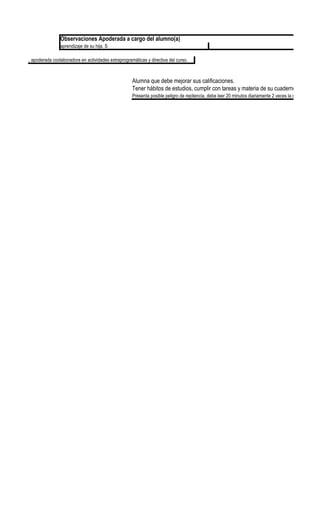 Observaciones Apoderado(a) ElExcelente hogar es una parte fundamental para lograrlo.