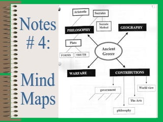 The document discusses effective note-taking strategies. It recommends taking notes for the purposes of remembering, examining, preparing, organizing, and reviewing material to think critically. The "5 C's of note-taking" are outlined as taking charge of lectures, concentrating, listening critically, connecting ideas, and capturing key points. Various note-taking styles like outlining, Cornell method, paragraph method, and fishbone diagrams are presented. The document emphasizes choosing a style that works best for the individual and provides other tips for effective note-taking.