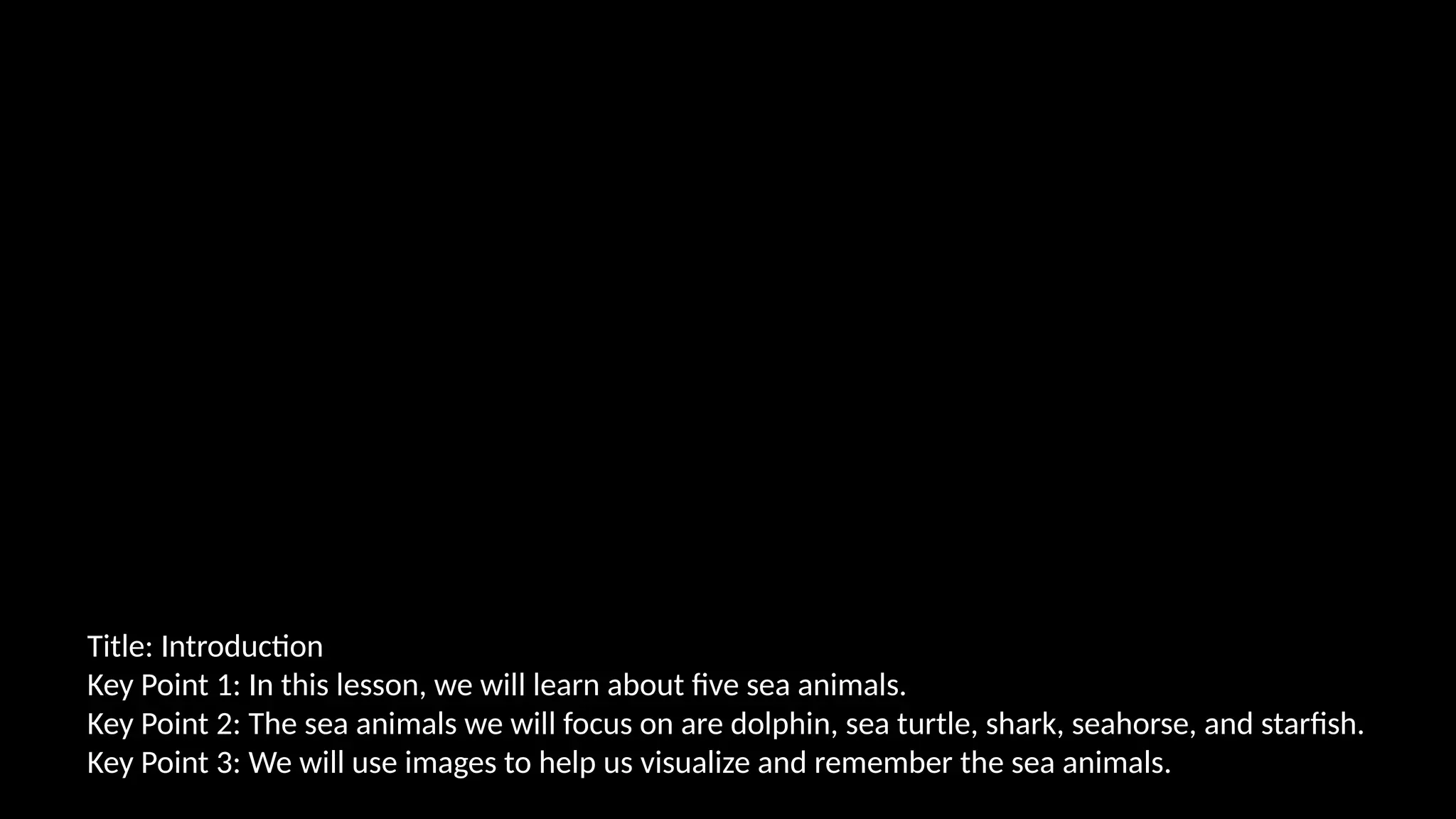 This document outlines an English lesson aimed at teaching children about five sea animals: dolphin, sea turtle, shark, seahorse, and starfish, using images for visualization. Each animal is introduced with key points highlighting its characteristics and significance in the ocean ecosystem. The lesson encourages vocabulary expansion and appreciation of marine life among children.