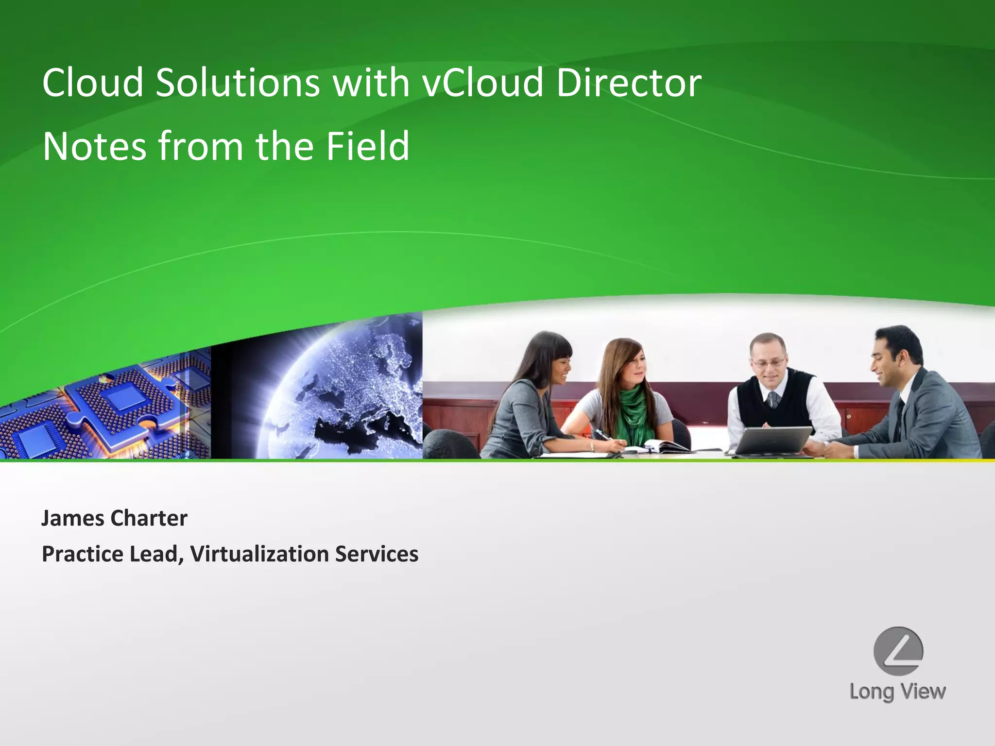Long View Systems presented on their experience deploying vCloud Director and converged infrastructure solutions. They discussed two case studies: 1) A public cloud for a service provider built on FlexPod architecture, and 2) A private development cloud on VCE architecture to enable rapid provisioning for projects. Key lessons included the importance of monitoring tools, understanding requirements, and extensive planning and testing.