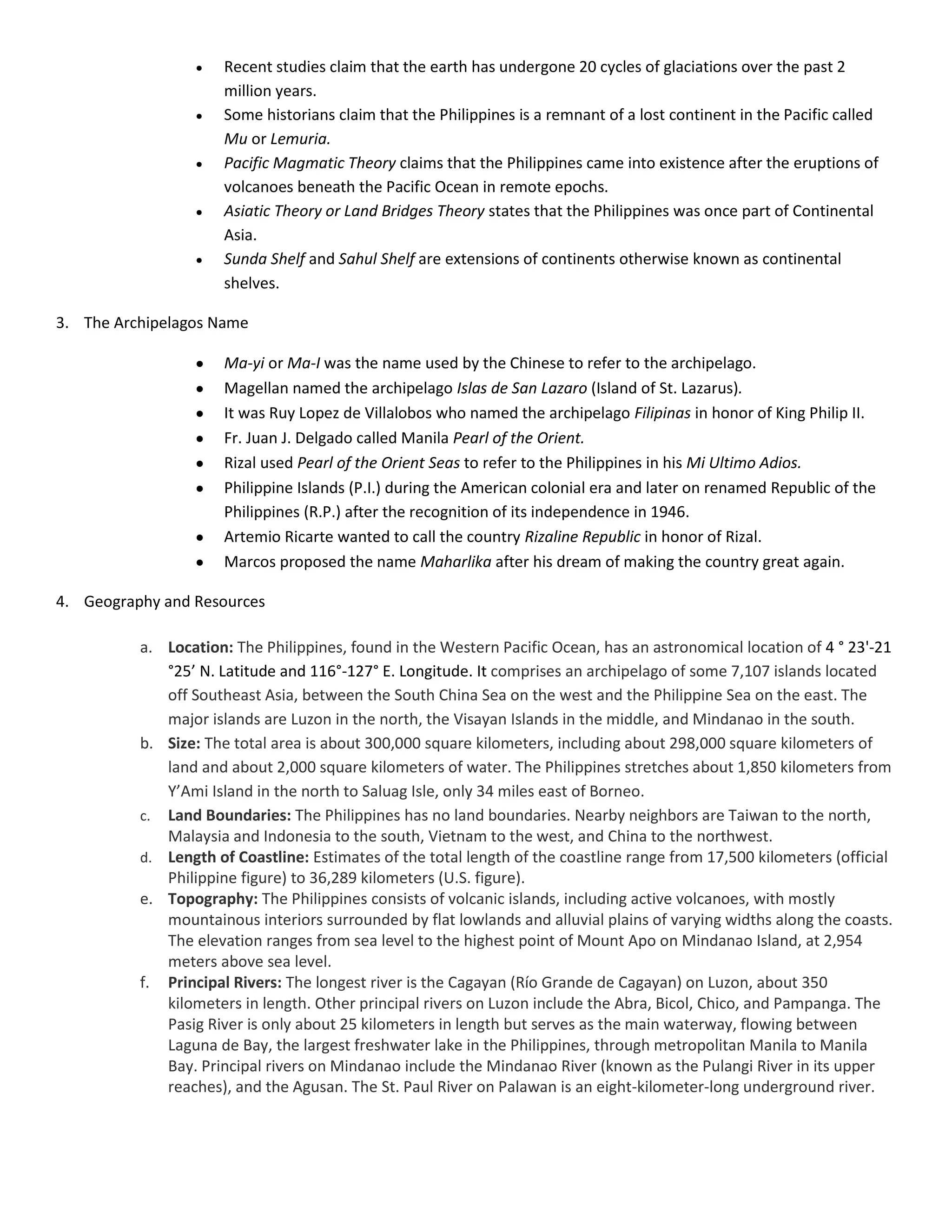 3. Details on the location, size, and topography of the Philippines as well as its major rivers, regions, ecosystems, and natural resources which include minerals, geothermal power, fish, and timber.