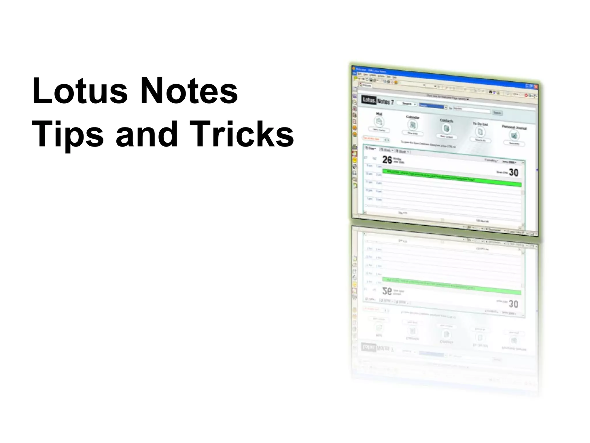 This document provides tips and tricks for using Lotus Notes. It includes shortcuts for rearranging table cells and list items, keeping document context when switching views, copying selected text as a table, powerful text formatting shortcuts, and creating and managing groups. It also describes tools for content pasting, sharing documents, mapping addresses from contacts, and accessing additional resources on using Lotus Notes on the website alanlepofsky.net.