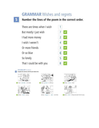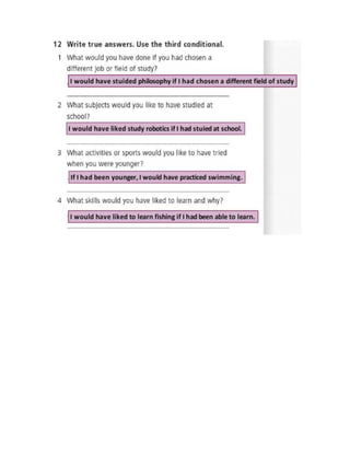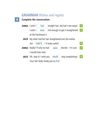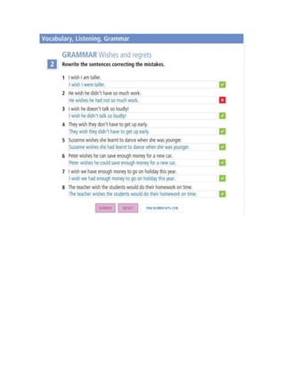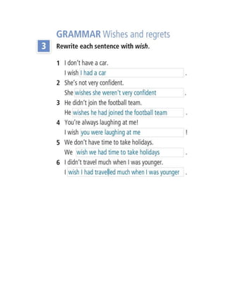 1. Grammar exercises on wishes, regrets, third conditional, and ability with examples.