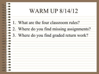 3. Tips for effective notetaking include keeping a separate section for each class, dating and numbering pages, using abbreviations and own words, and developing a coding system to indicate important points.
